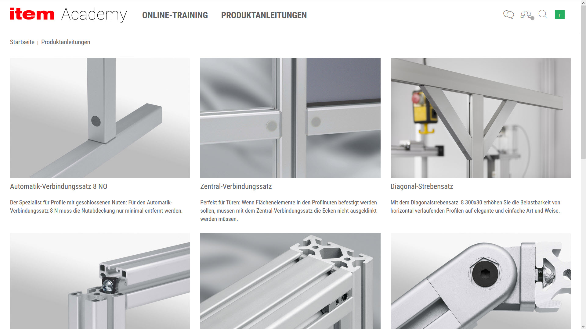 Expanding expertise to suit specific needs – when coupled with a well-thought-out approach, e-learning can be used to tailor vocational training ever closer to learners’ individual needs. It also offers a way to optimise the learning process and share knowledge efficiently. item set out to achieve all these things, and offers web-based training and assembly guides for customers and partners in the item Academy. Content relating to products and specialist topics in industrial production is easy to follow and presented in a compact format. The online portfolio has been designed using the ILIAS learning management system.