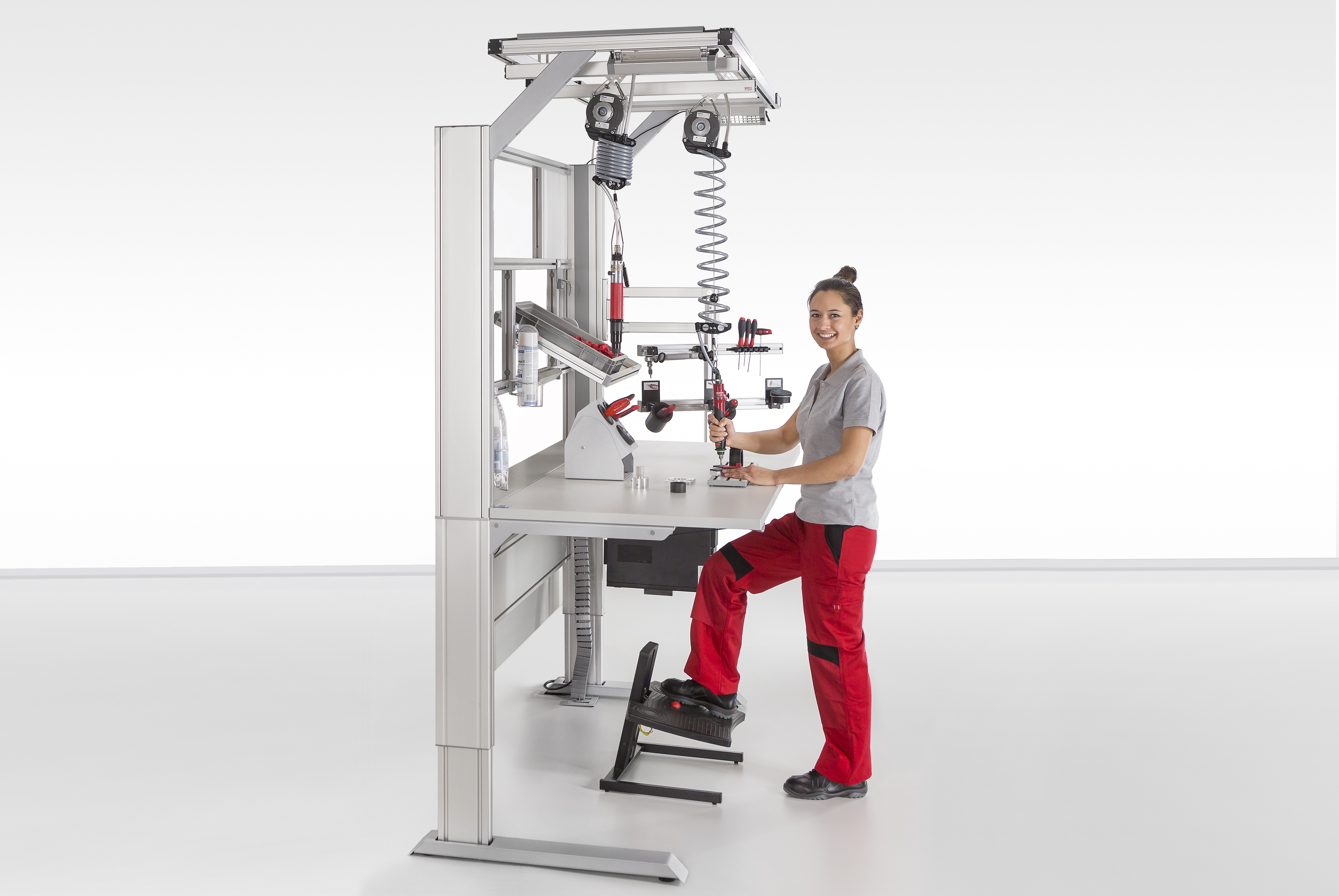 Caption 5: item developed ergologistic® for shaping more efficient workflows and boosting productivity. This innovative form of work bench design finds a balance between the work bench system and intralogistics.